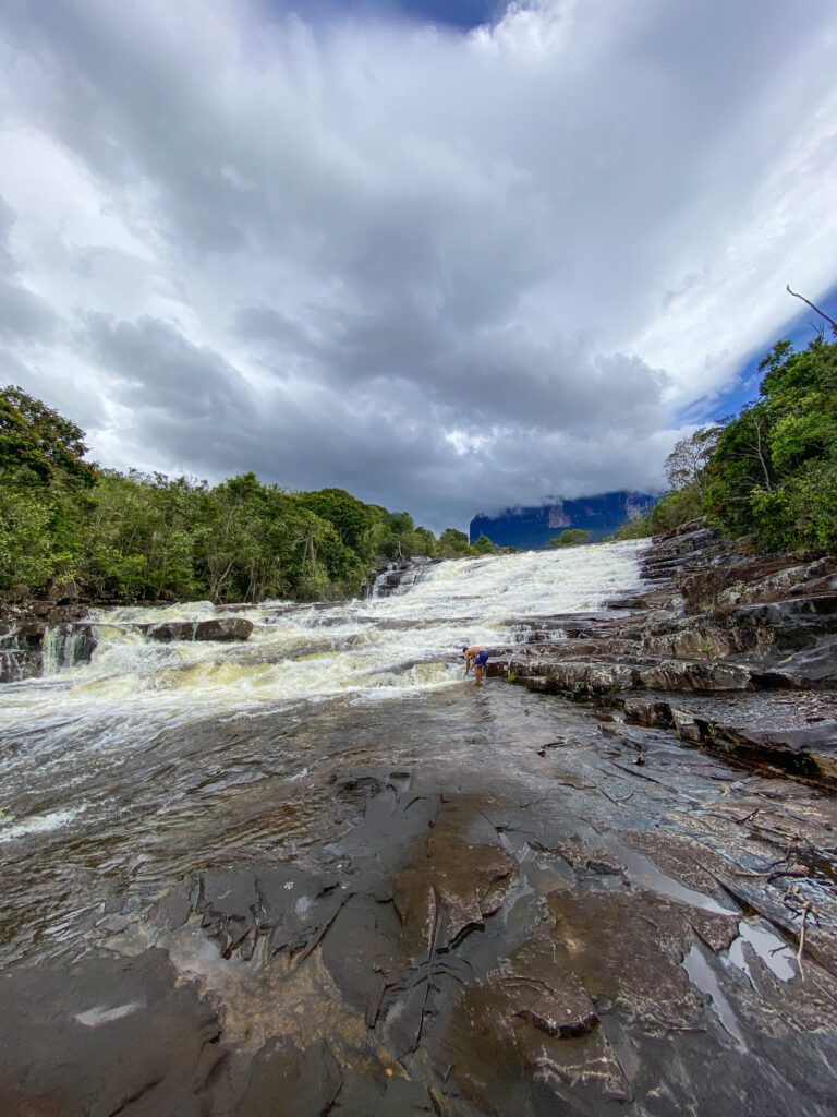Há 800 metros do topo do Monte Roraima existe o Passo das Lágrimas, faz-se necessário passar por debaixo da cachoeira, o guia irá passar instruções sobre esse trecho.